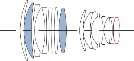 Do budowy obiektywu wykorzystano 14 soczewek, ułożonych w 12 grupach. Wśród nich znalazły się soczewki ze specjalnych szkieł SLD* oraz elementy asferyczne, zapewniające ostrość obrazu również na brzegach kadru