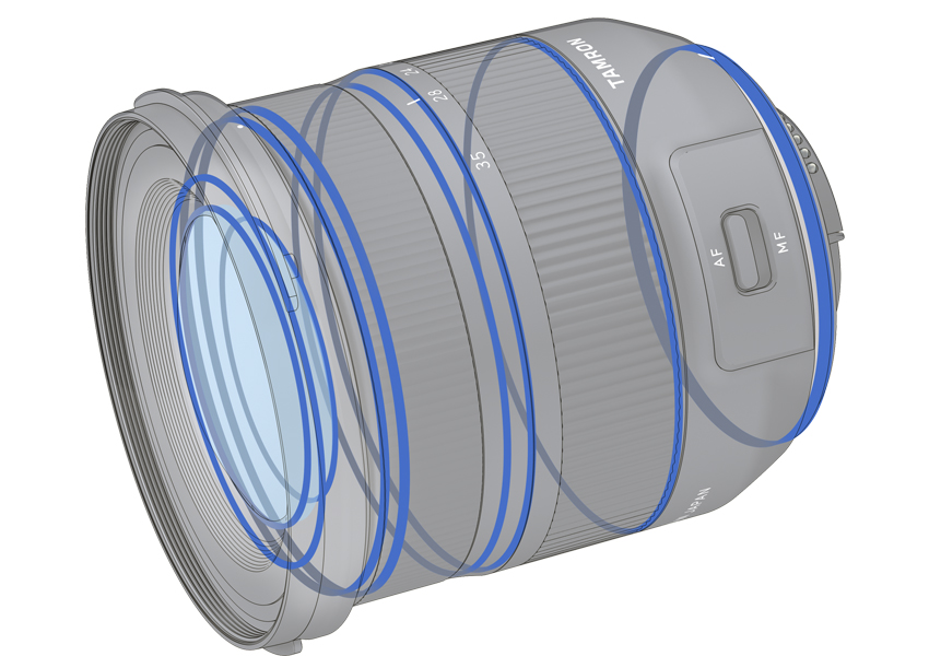 Przy mocnym świetle padającym wprost na przednią soczewkę we wnętrzu obiektywu pojawiają się często niepożądane odbicia światła. Podczas projektowania obiektywu 17-35 mm F/2.8-4 Di OSD przeprowadzono wielokrotną, kilkustopniową symulację, której celem była eliminacja takich odbić. Dodatkowo udoskonalono układ optyczny i poprawiono jakość obrazu. Powłoka typu BBAR (Broad-Band Anti-Reflection) zapewnia lepsze przepuszczanie światła i skutecznie ogranicza efekt zjawy i rozpraszanie światła we wnętrzu obiektywu.