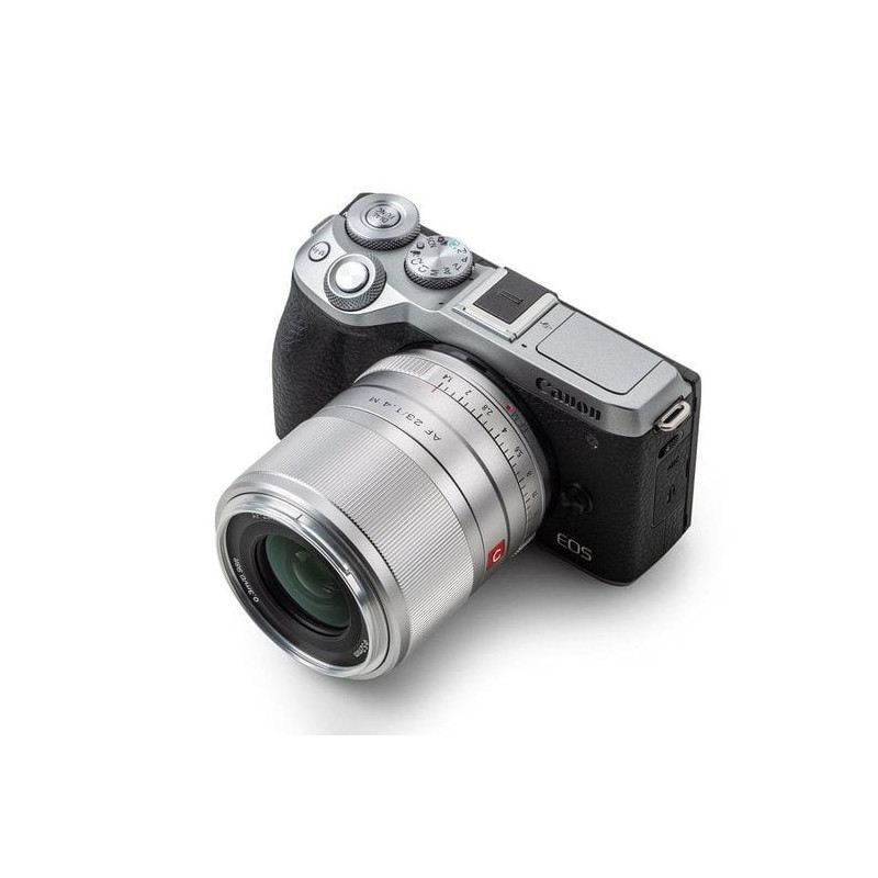 Obiektyw charakteryzujący się elegancką i wszechstronną konstrukcją, Viltrox AF 23 mm f / 1.4 EF-M jest odpowiednikiem szerokokątnego obiektywu stałoogniskowego o ogniskowej 35 mm przeznaczonego do bezlusterkowców z mocowaniem EOS M.